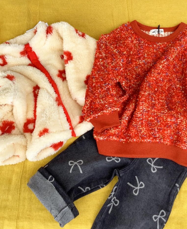 秋分の日が終わり 今年は少し涼しくなるのが早くなってきた気がします♪ 秋は本当に気持ち良いです。 秋らしいお洋服のご紹介です。 フリースアウターは赤ちゃんには軽くて温かいので喜んでもらえます。 80,90,100 2640円です。 右の丈の長めモフモフセーターは 100,110,120 3410円です。 ボトムもワイドパンツで 80〜130cm ロールアップしても可愛いですね❤️