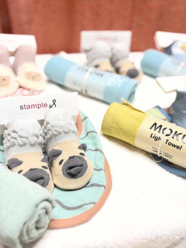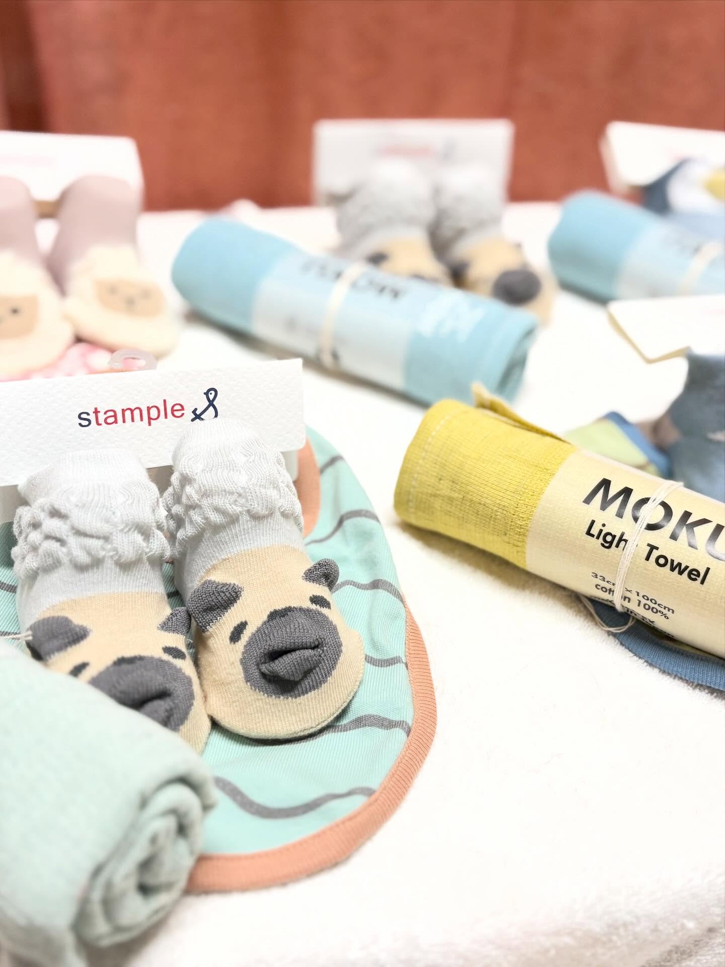 5 3月.2026 昨日オムツケーキを6個追加しました。 新生児用オムツ12個 ネブラ社のビブとstampleの靴下 を 今治のMOKUで包みました。 生まれる前の赤ちゃんにも、生まれたての赤ちゃんにも ご自宅まで送れます。 身近に使える便利な物セットです。 ママの枕元にも邪魔にならないコンパクトなサイズです。 ネットより買えるように今週中にアップします。